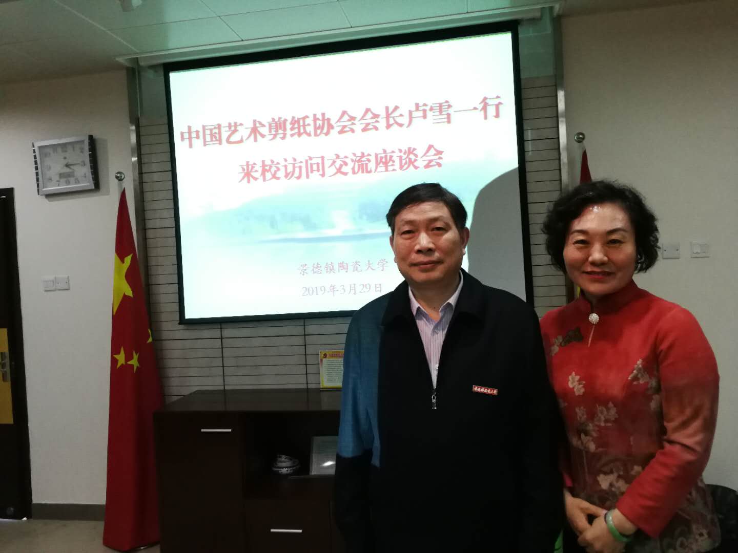 2019年3月29日下午中国艺术剪纸协会会长卢雪一行到访景德镇陶瓷大学进行考察交流